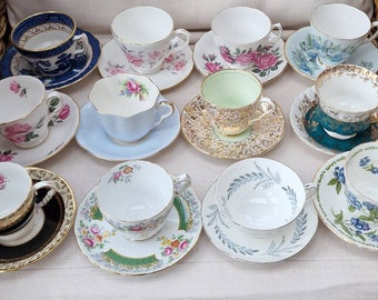 Mismatched Tea Cups And Saucers Tea Cups Mix Match Tea Etsy Tea Cups Tea Cups Vintage Tea Cup Collection